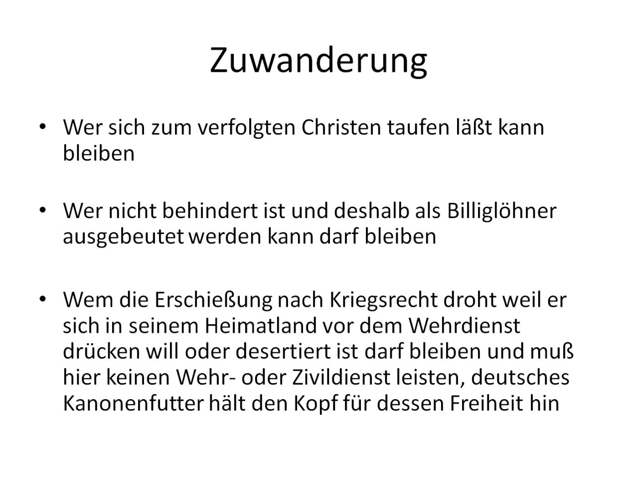 ?Wem die Erschießung nach Kriegsrecht droht weil er sich in seienm Heimatland vor dem Wehrdienst drücken will oder desertiert ist darf bleiben und muß hier keinen Wehr- oder Zivildienst leisten, deutsches Kanonenfutter hält den Kopf für dessen Freiheit hin